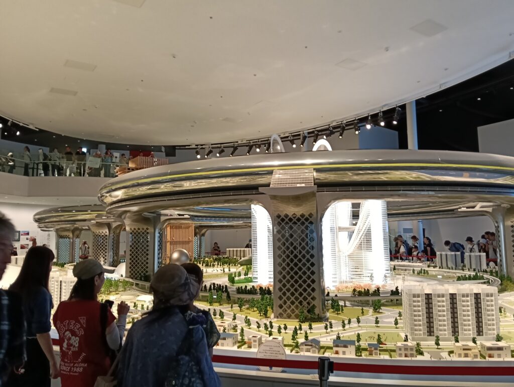 未来都市をイメージしたジオラマ。未来都市になんだか一戸建てが多いのはさすが飯田産業と思いましたけど・・・。