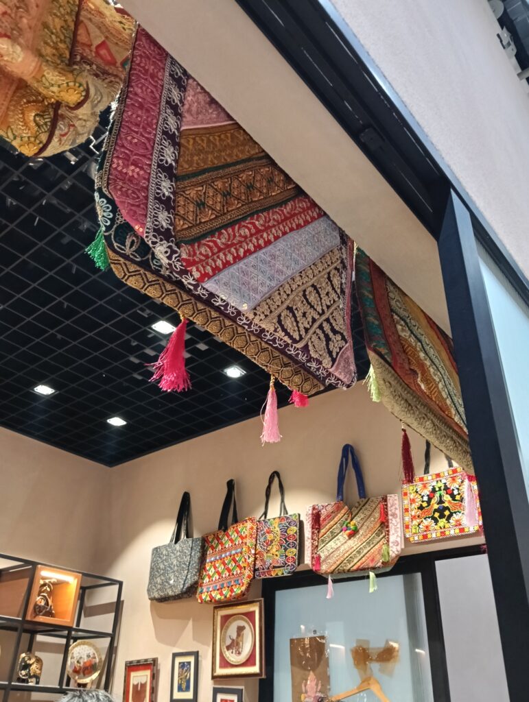 インド製品は美しいですね。パビリオンの作りも芸術的です。インドの独特の匂いも。