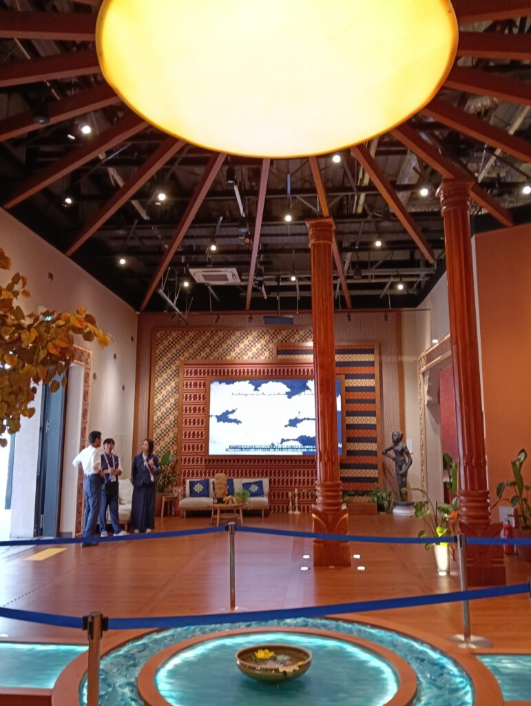 パビリオンの中はこんな感じで、寺院と稲作推しです。