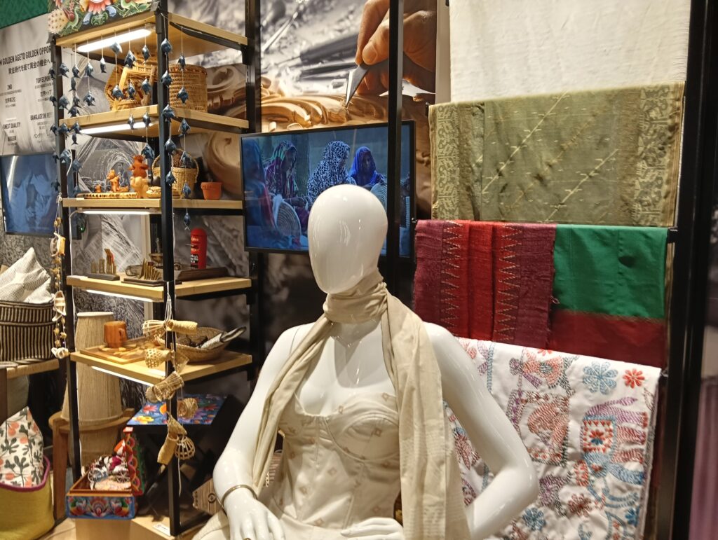 こちらも比較的並ばずはいれたパビリオン。バングラデシュ製の衣服はたまに見かけますがやはり布製品は大きな産業のよう。