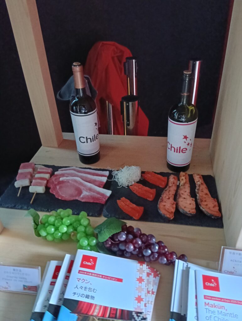 「マクン」という織物が展示の中心だったのですが、私たちにとってチリと言えばワイン、そして鮭。出口付近にちらりと展示があっただけだったのでちょっと寂しい気も。