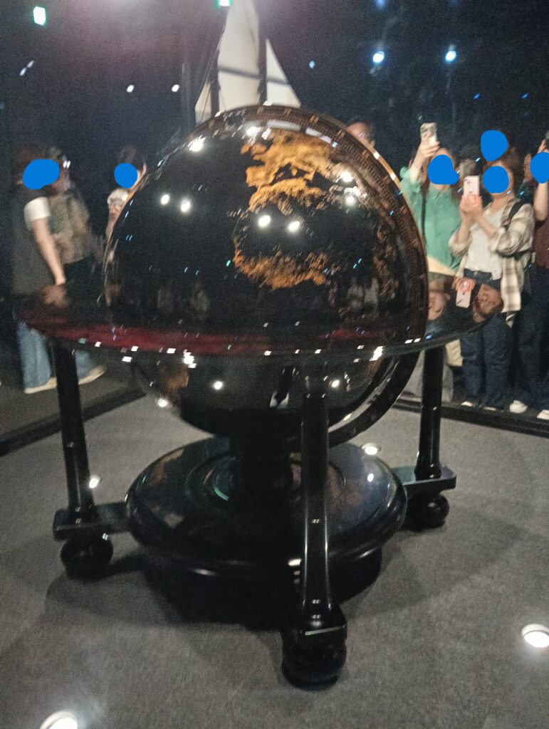 輪島塗の大型地球儀。制作過程も写真で展示があり興味深いです。