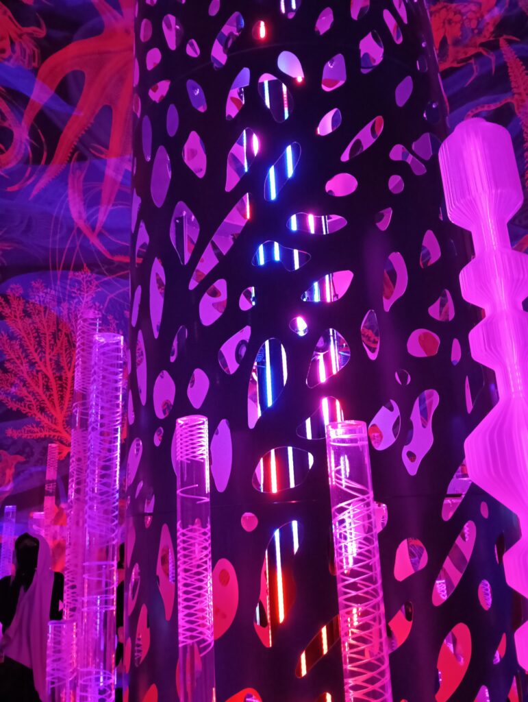 30分ほど並んで入れたので見学しました。この中にミャクミャク9体がいるとのことでしたが私は一つも見つけられず。