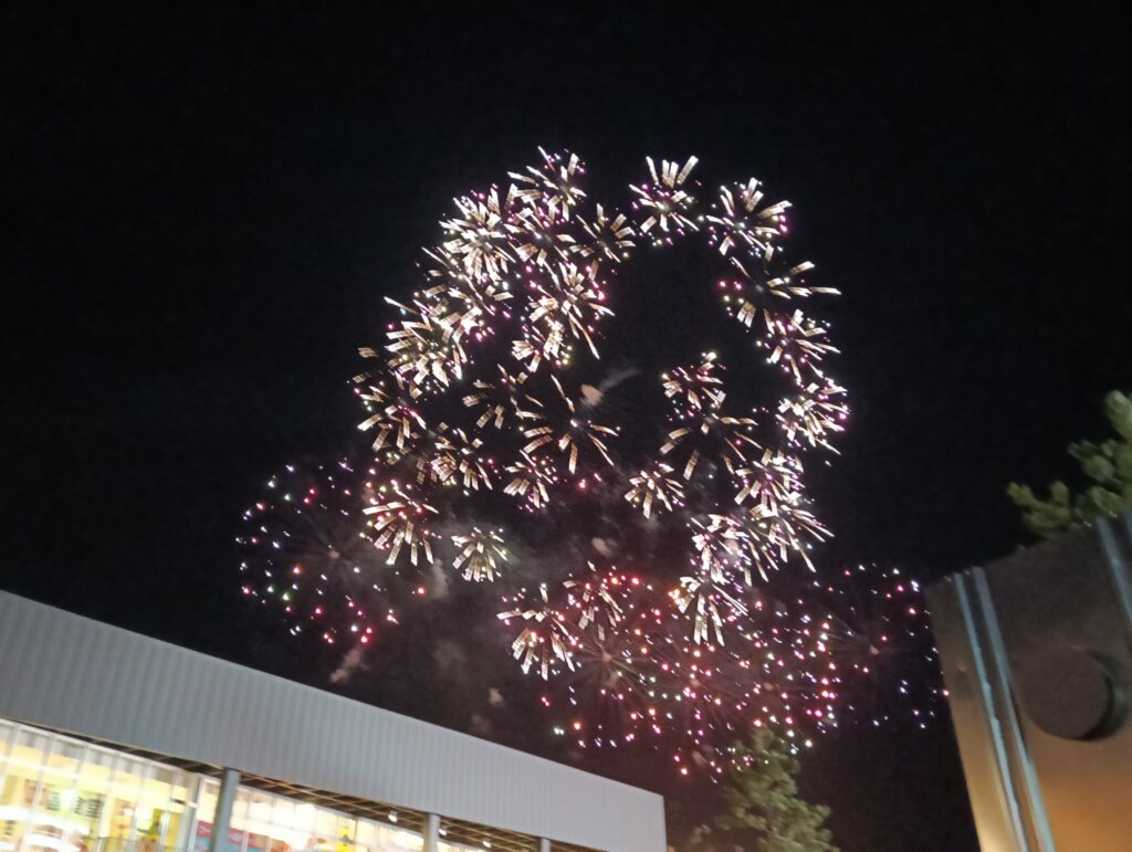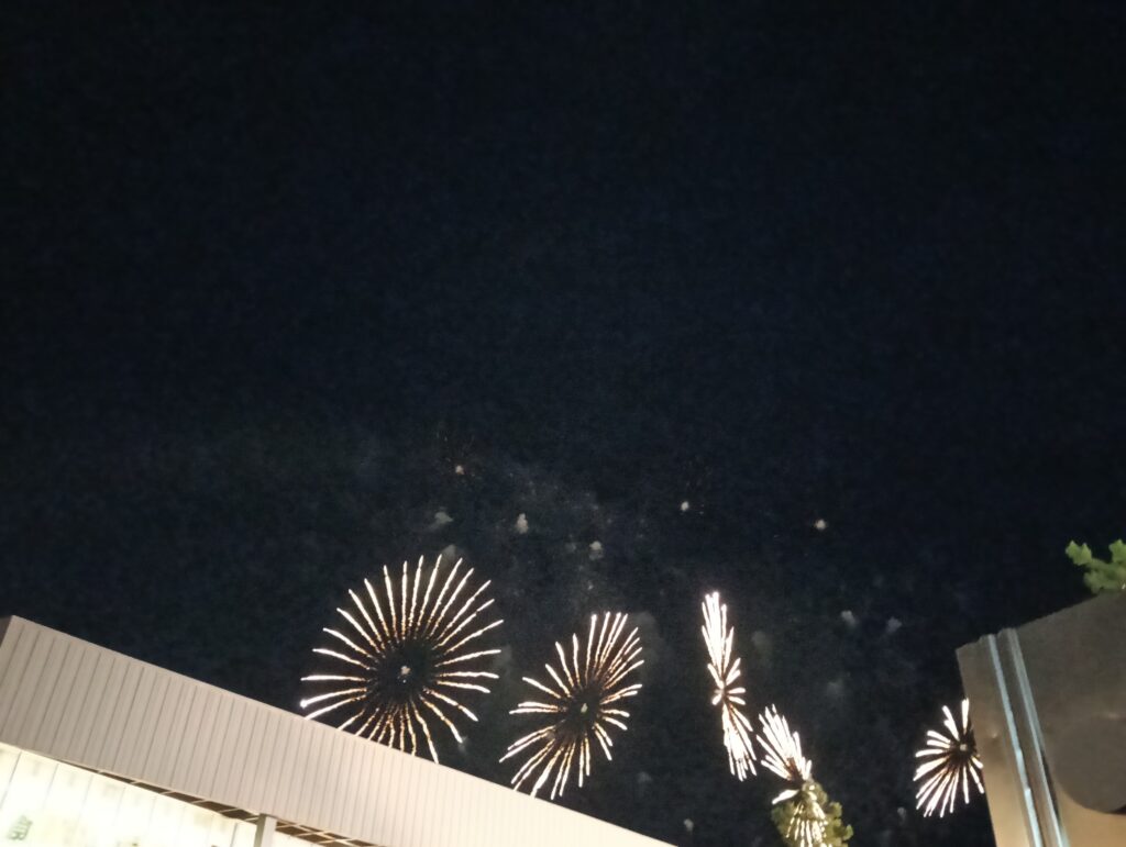突然大きな音が響いて何事かと思ったら、綺麗な花火があがっていました。