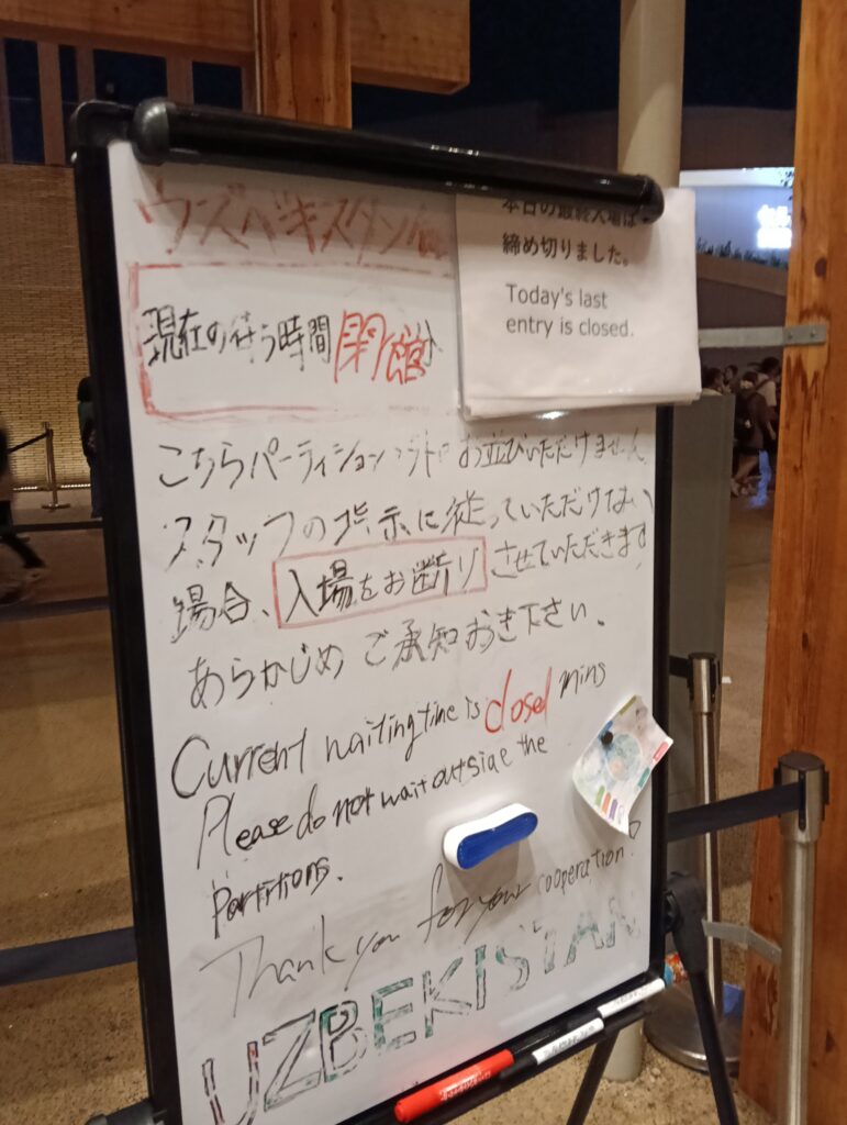 これか?という列に並んだらここに並ばないでください、と係員から声がかかりました。ウズベキスタン館、入場制限をしていて並ぶことすらできませんでした。