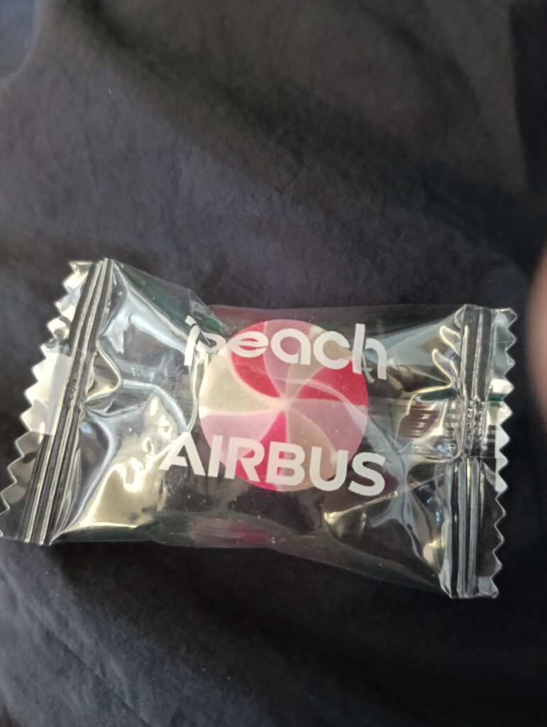2時間20分と比較的長時間フライトだからか、席の前後の幅が結構広いタイプの機体でした。私は通路側でしたが、窓側の人が席をたってもあまりストレスがないぐらいの広さです。