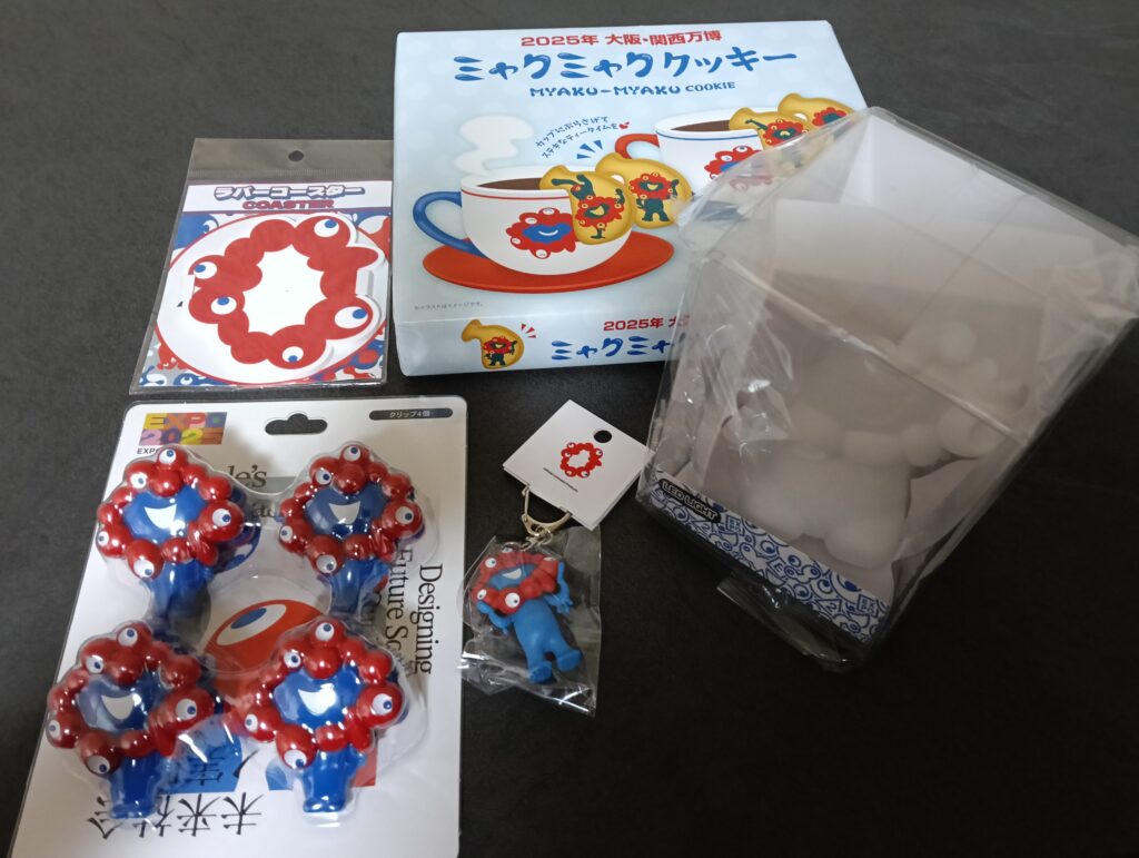 クッキーは消え物ですがそれ以外のグッズは日常的に使って大阪万博の思い出、素敵なコンセプトと運営に思いをはせます。普段こんなにお土産を買うことはないのですが、やはりこれもミャクミャクの魅力ですよね。普段から手元に置いておきたいなあと思いました。